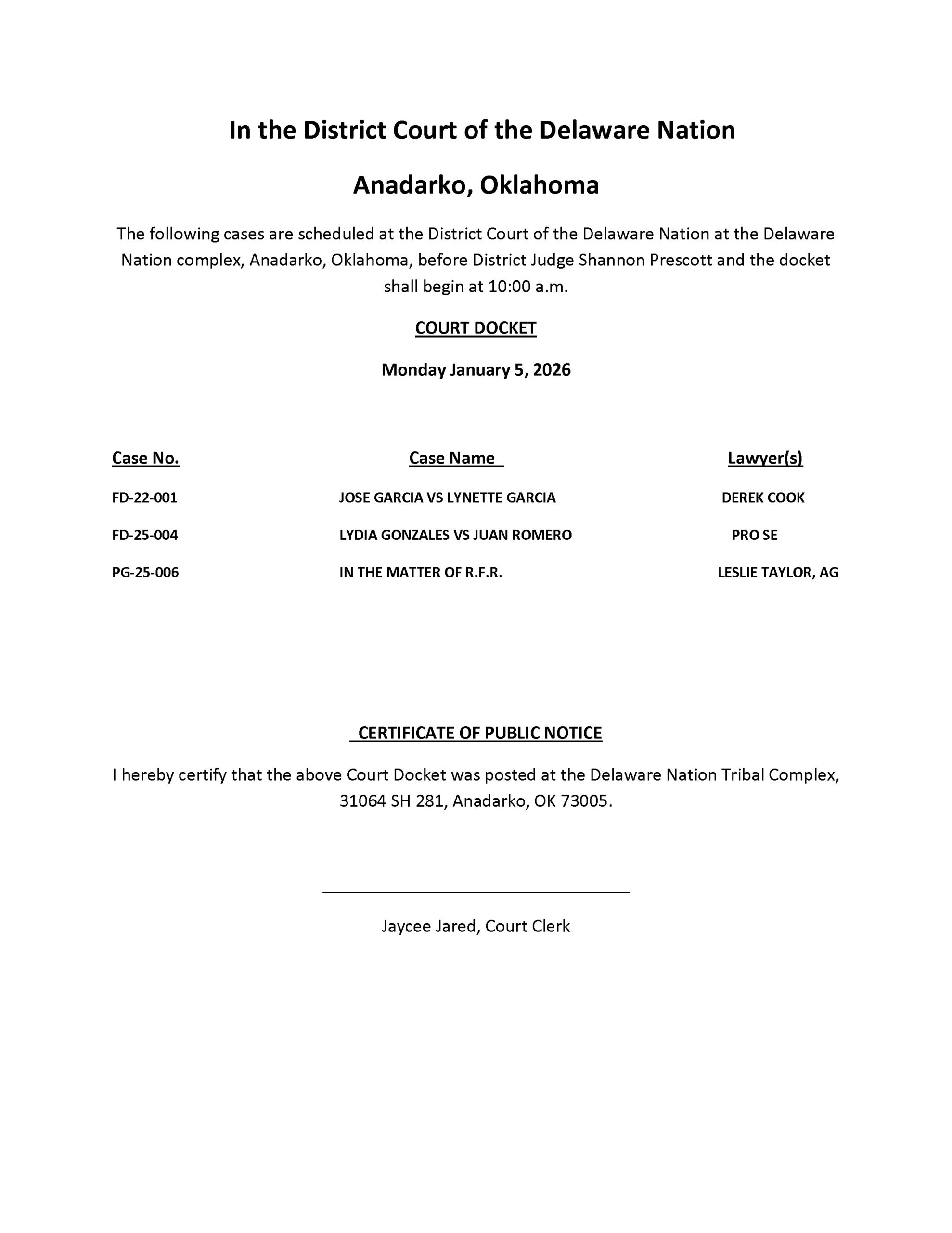 Tax/Court Clerk: